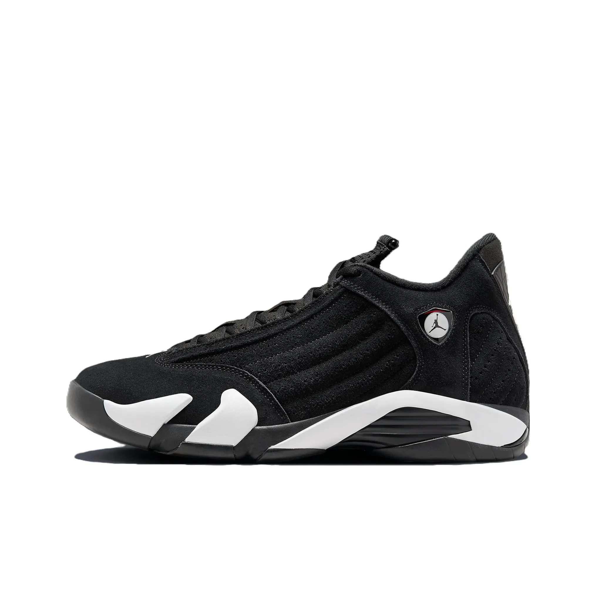 For the Air Jordan 14 'Black Toe', inspect the shoe's appearance closely. Authentic pairs will feature high-quality materials with a smooth finish. The white leather should be bright and free from discoloration, while the black accents should be deep and rich. The toe box should have a rounded tip that aligns with the original design. Any inconsistencies in color or texture may suggest a fake.