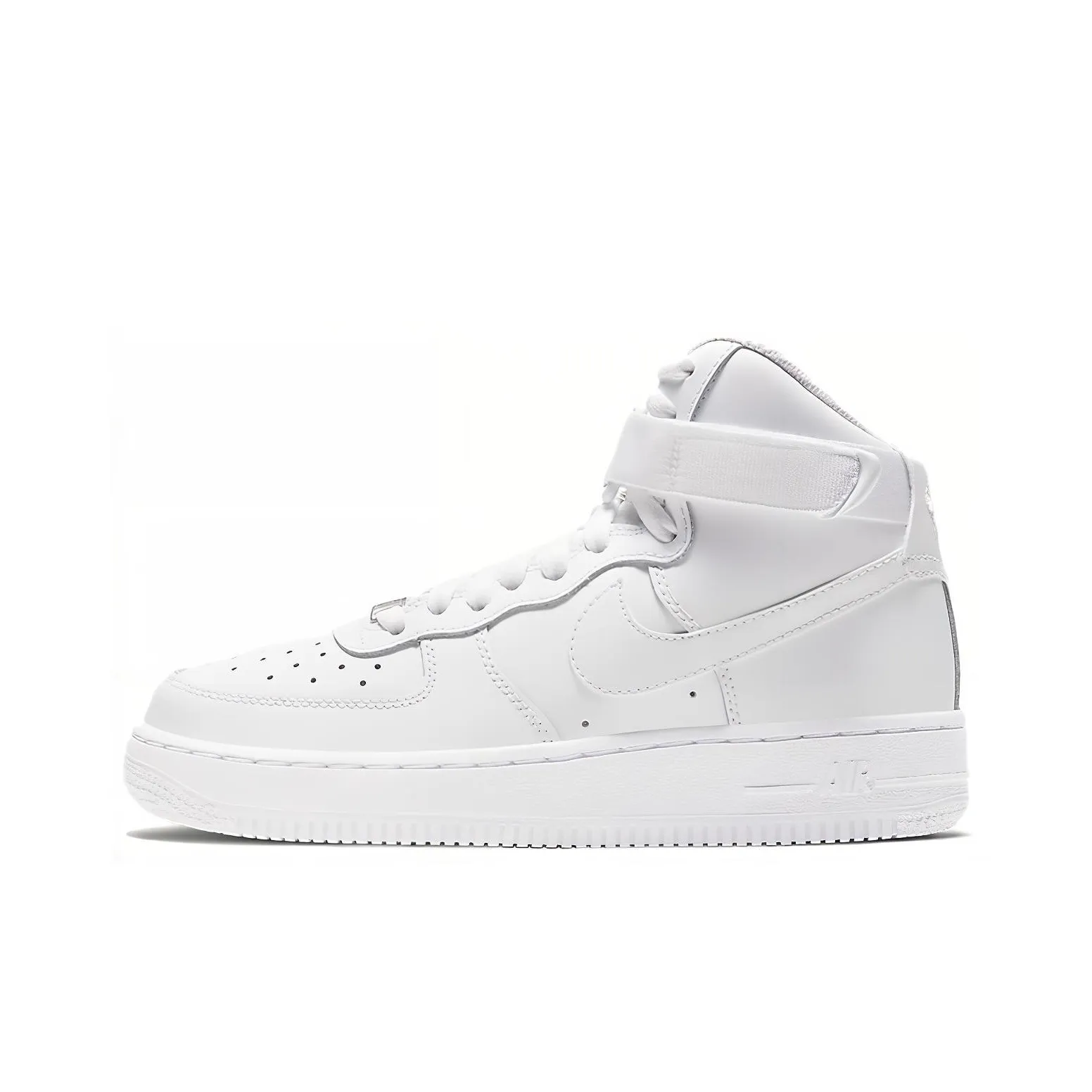 When assessing the Nike Air Force 1 High LE Triple White, look for the quality of the leather. Authentic pairs have a smooth, high-quality finish. The sole should be firm and not overly flexible, maintaining the shoe's structure.