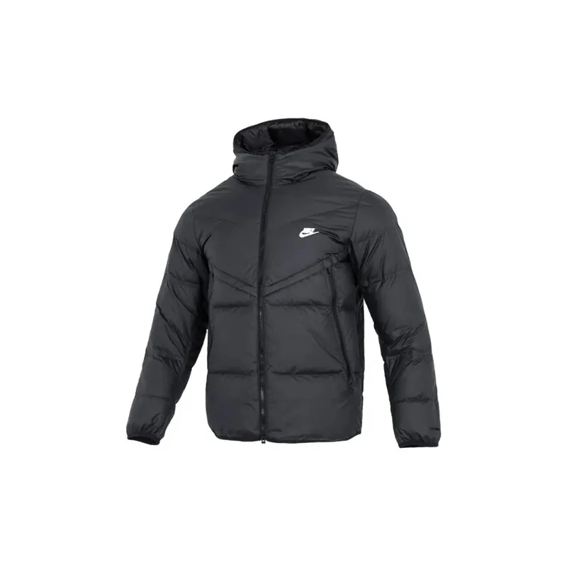 To verify the authenticity of the Nike Down Jacket Unisex Warrior Black, inspect the fabric quality and stitching. Authentic jackets will have a smooth polyester finish and even stitching throughout. The filling should feel plush and evenly distributed, with no clumping.