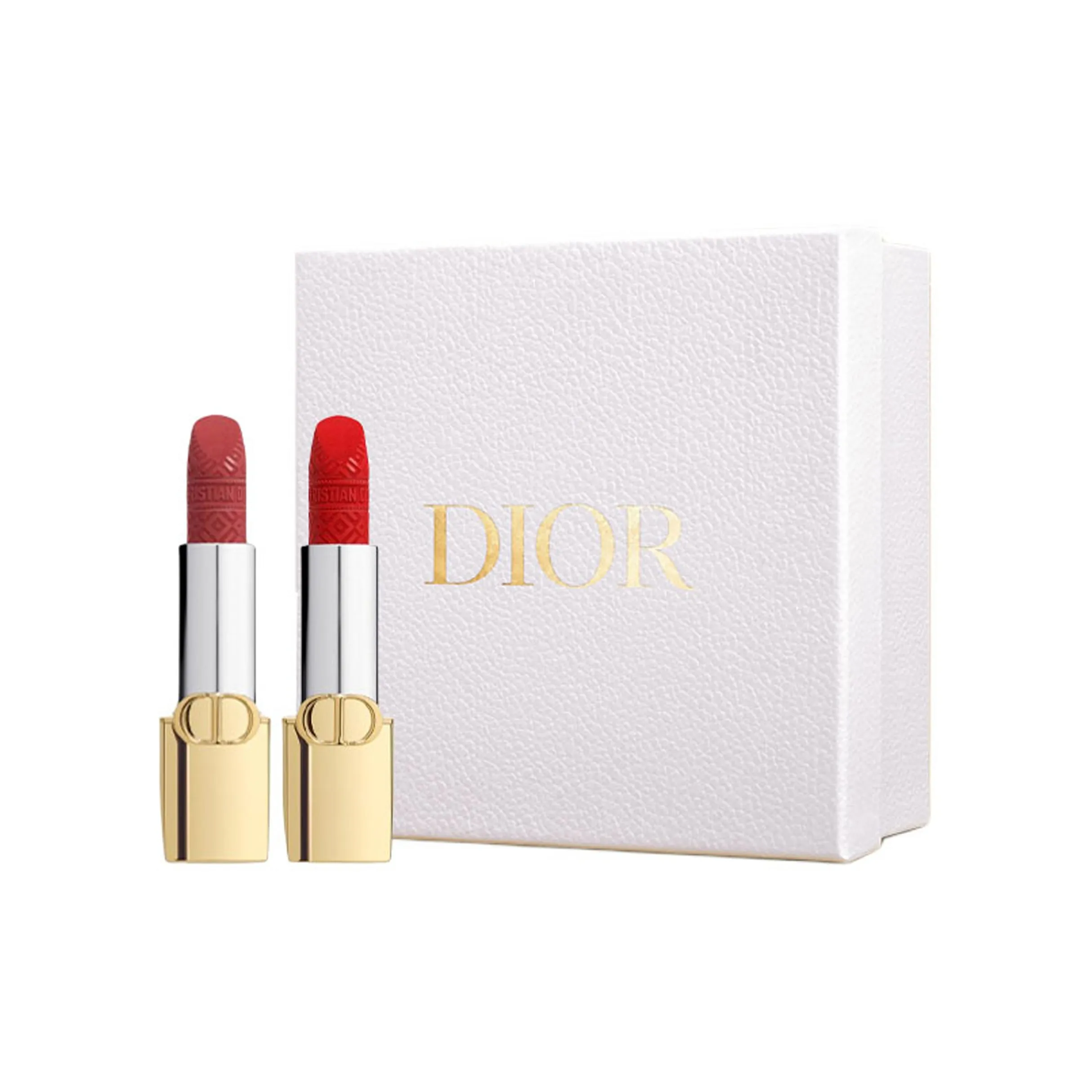 DIOR Christmas Limited Fierce Blue Gold Lipstick Double Gift Box Set Velvet