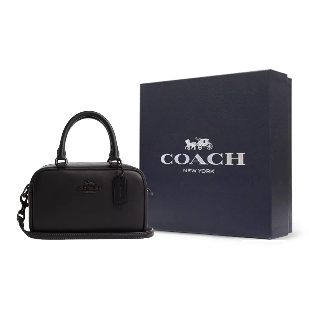 COACH SATCHEL Leather Bowling Bag, Handbag, Shoulder Bag, Crossbody Bag Small Women's Black