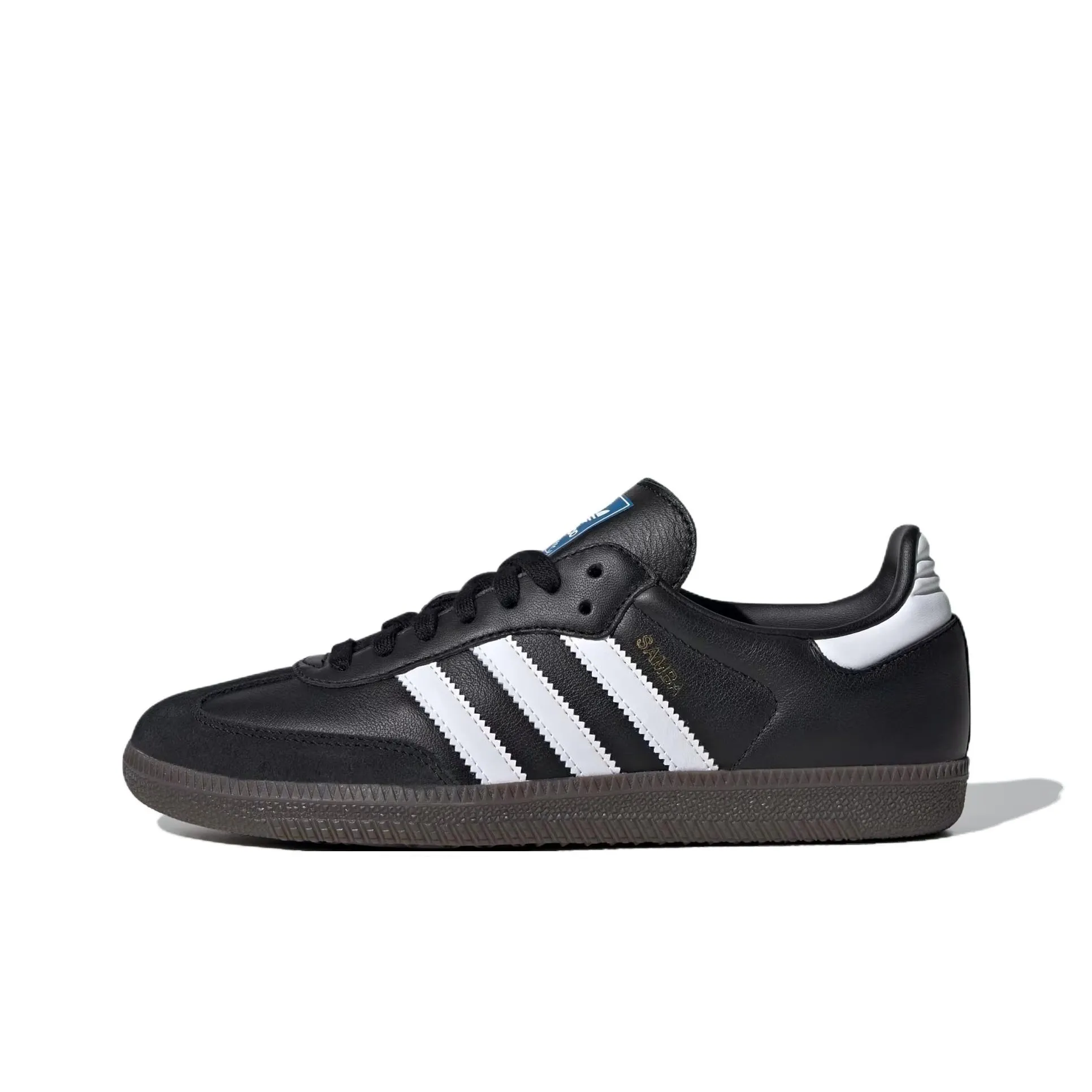 To identify the authenticity of the adidas originals Samba OG Black White Gum, examine the overall appearance. Authentic pairs will have a clean, polished look with precise stitching and no irregularities. The iconic three stripes should be well-defined and evenly spaced. Additionally, check the label inside the shoe; it should feature clear branding, including the adidas logo and style ID, which should match the product details.