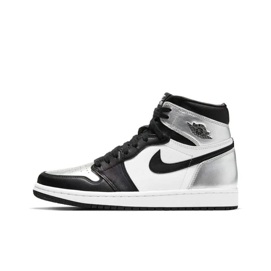 For the Jordan 1 Retro High Silver Toe Women's, inspect the quality of the cow split leather and top grain cow leather. Authentic pairs will have a premium feel and the silver toe should be shiny and well-defined.