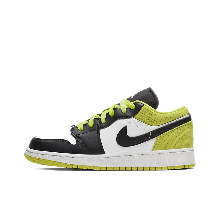 To authenticate the Jordan 1 Low Black Cyber GS, examine the quality of the synthetic leather. Authentic pairs will have a smooth finish and a consistent color scheme of white and yellow. The stitching should be even and precise, with no loose threads.