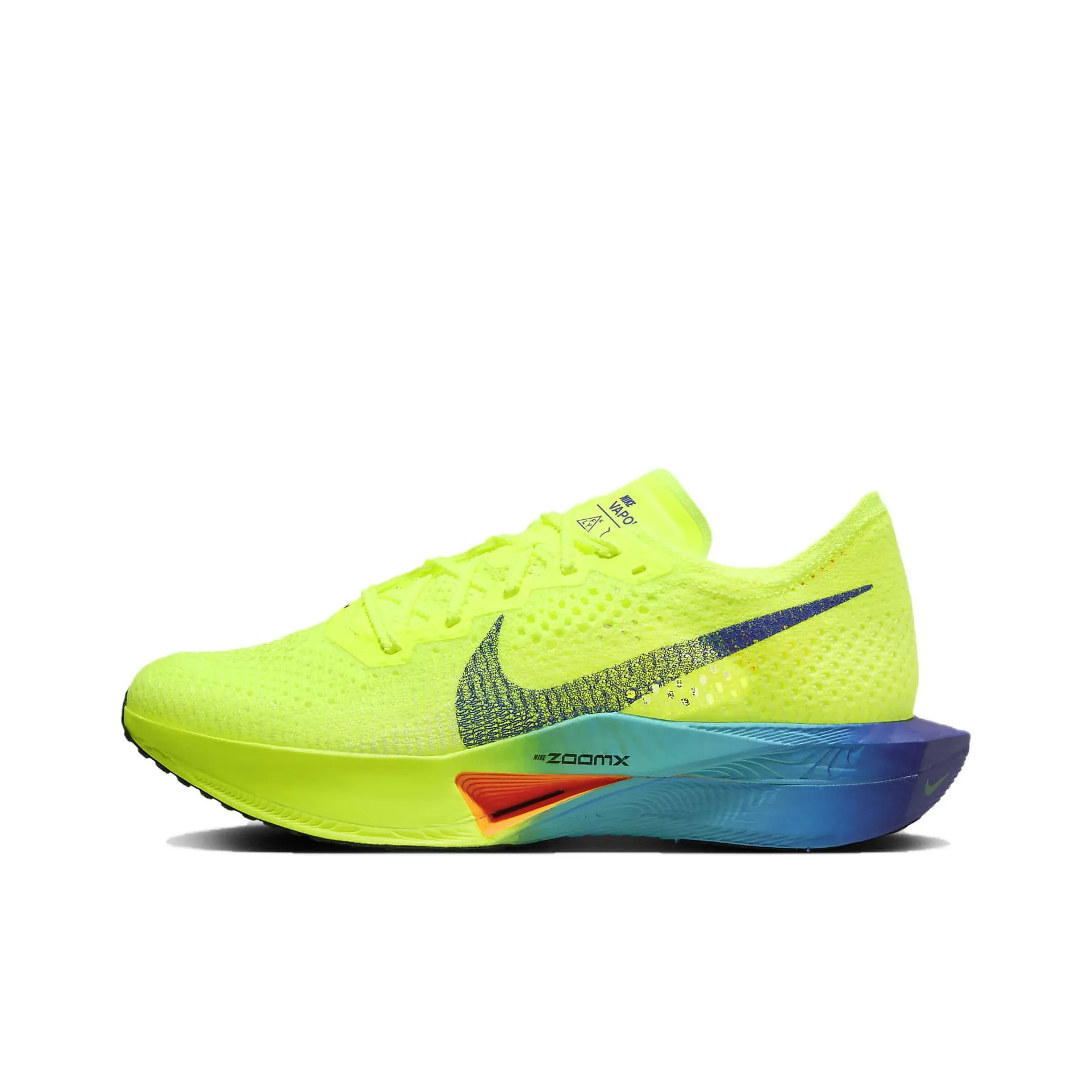 For the Nike ZoomX Vaporfly 3, check the overall appearance and color consistency. Authentic pairs will have a bright yellow color and a well-structured design. The sole should have a unique Zoom X technology pattern, which is a hallmark of genuine Nike running shoes.