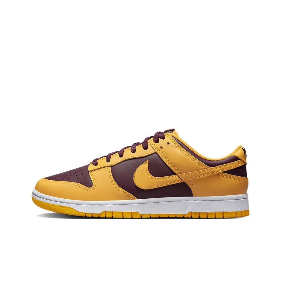 To authenticate the Nike Dunk Low Arizona State, look for the quality of the leather and the color contrast. Authentic pairs have smooth leather with a rich yellow and burgundy colorway that is consistent throughout.