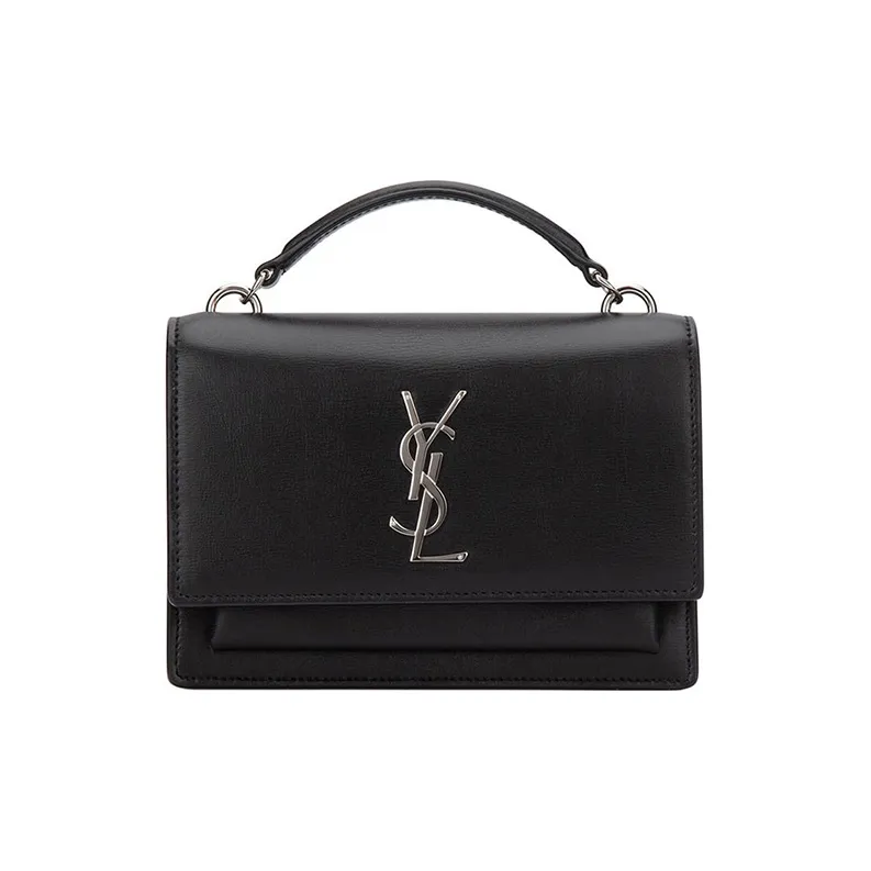 SAINT LAURENT YSL Smooth Leather Sunset Handbag Small Women's Black